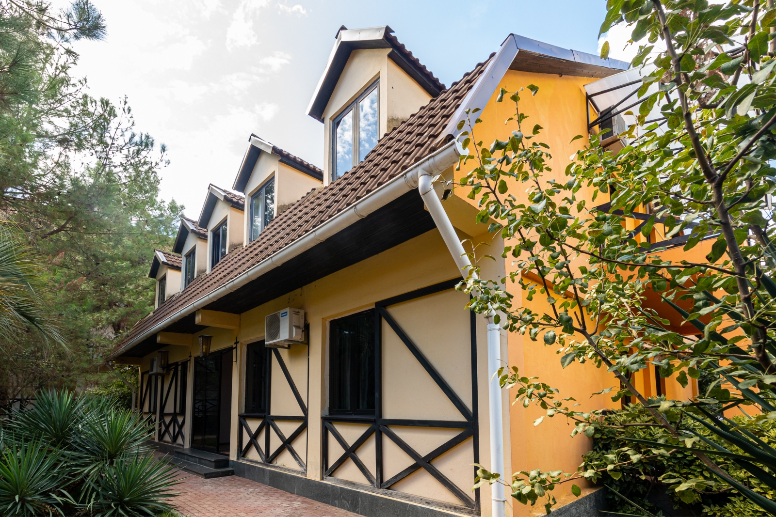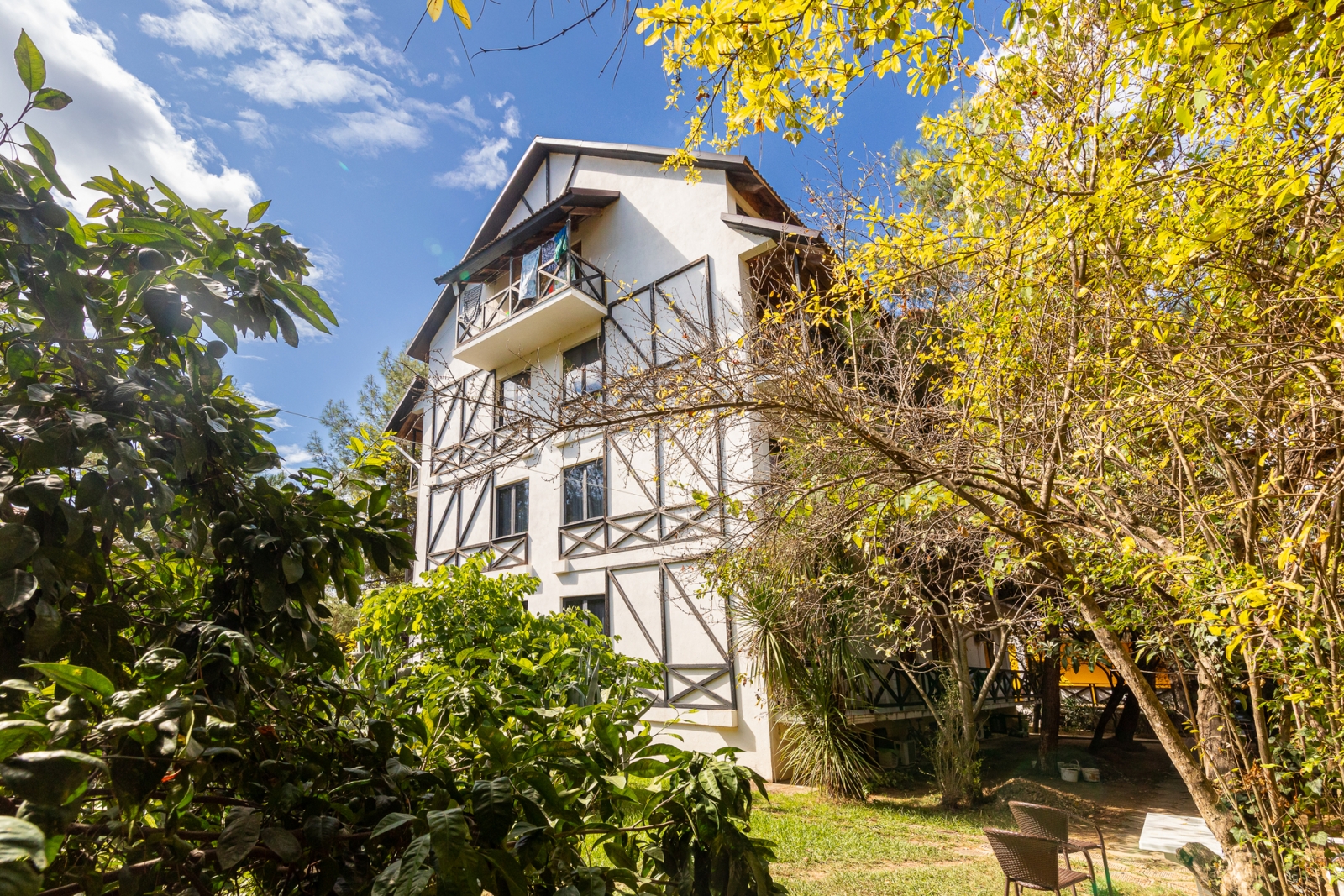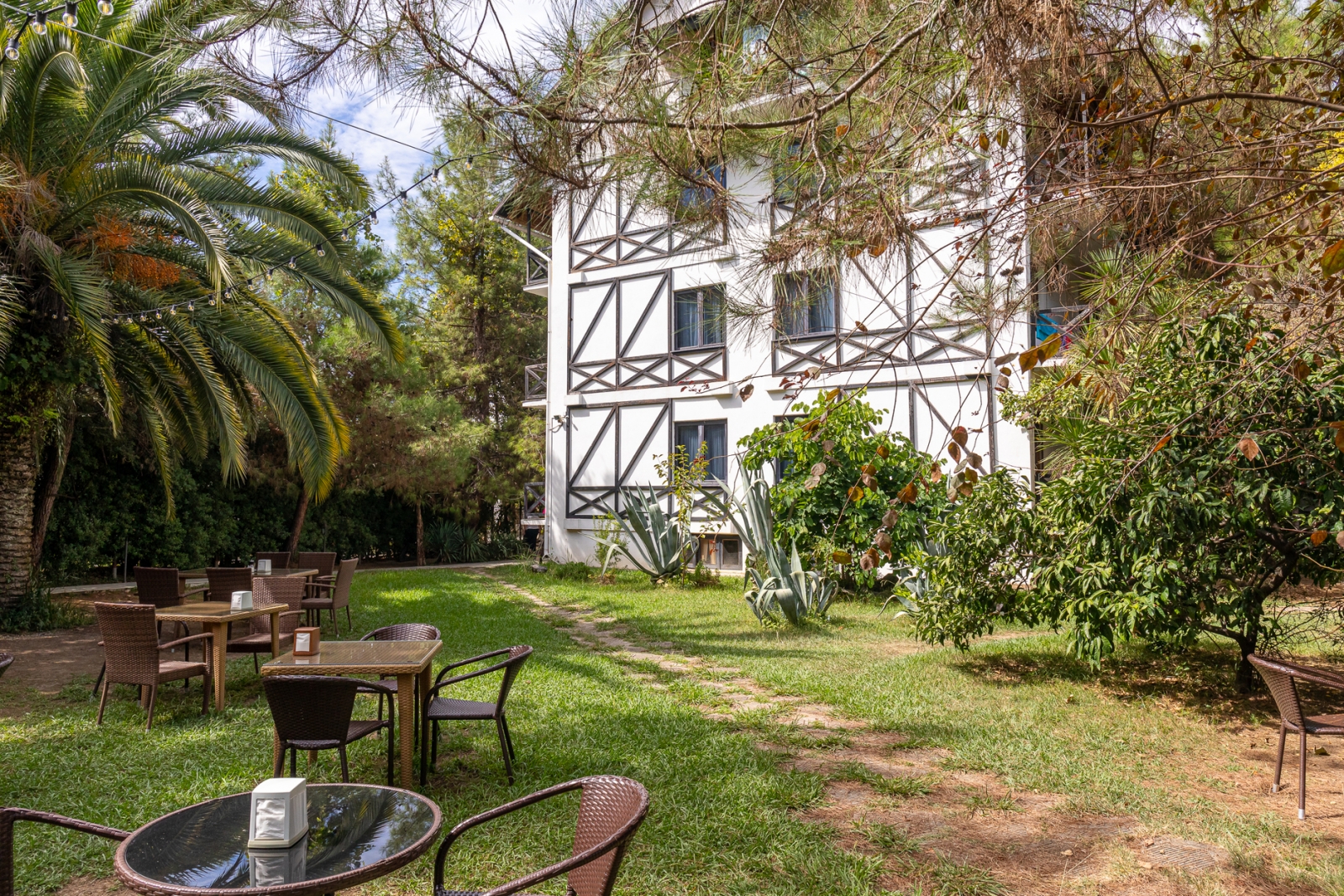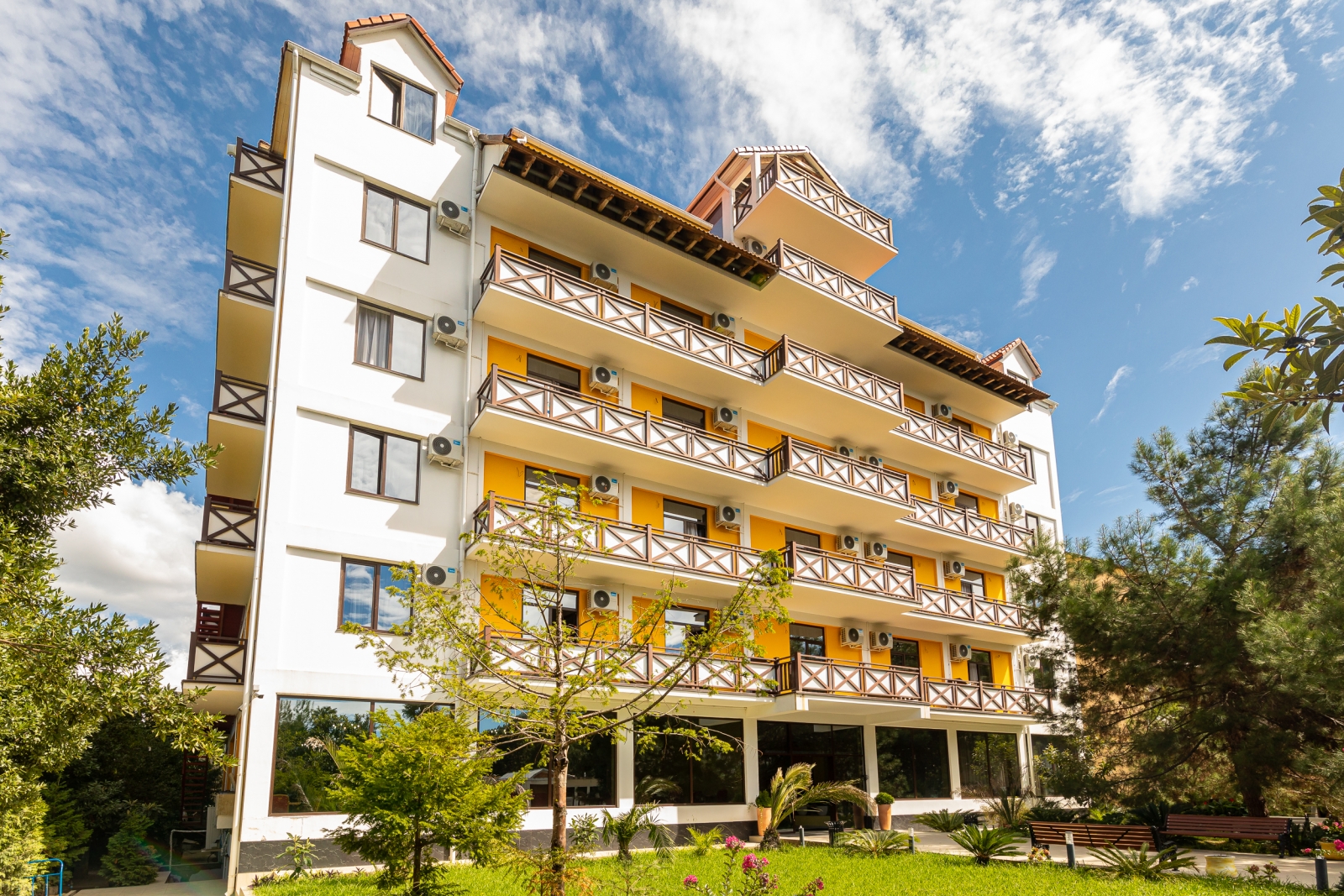 Здесь есть 4 корпуса, которые имеют 2, 4, 6 и 7 этажей. Самое высокое здание находится рядом с Пицундской бухтой в окружении леса. Чистый воздух и живописная природа. Территория ограждена от чужих глаз. Для отдыха есть беседки и площадки.