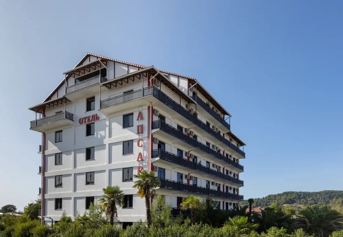 Отель «Апсара» разместился в 25 км от города Гагра. Благодаря развитой инфраструктуре рядом находятся магазины, кафе, небольшой рынок, набережная с дискотеками и другие удобства.