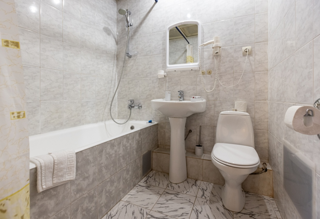 Площадь номера - 33 кв.м. 1 комната. 2 осн. места. В номере: телевизор; холодильник; балкон; кондиционер; ванна; туалет; фен; набор посуды; Wi-Fi бесплатный в номере; туалетные принадлежности; 2-спальная кровать; чайник. 2 доп. места: